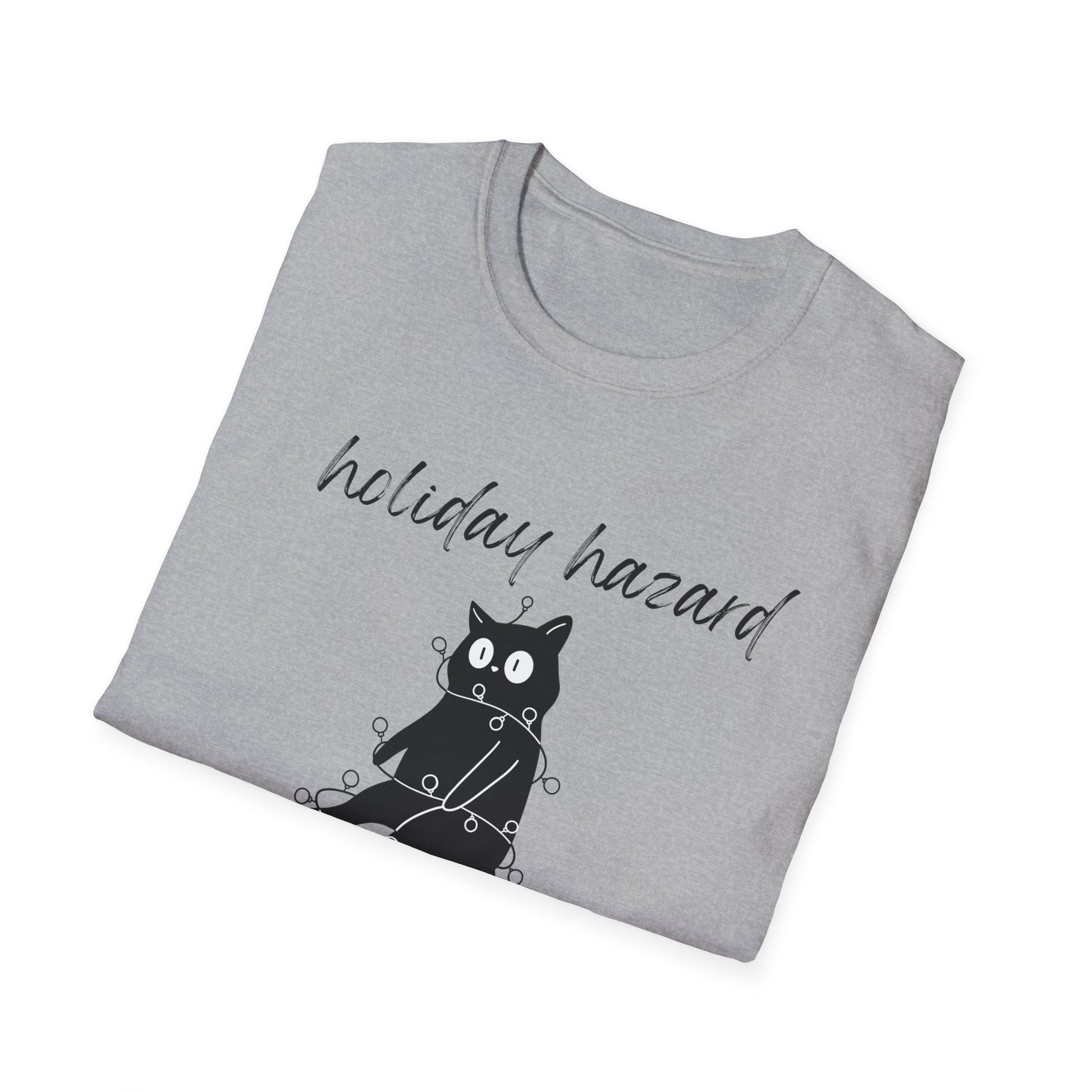 Holiday Hazard Black Cat Christmas T-Shirt | Funny Feline Lights Graphic Tee